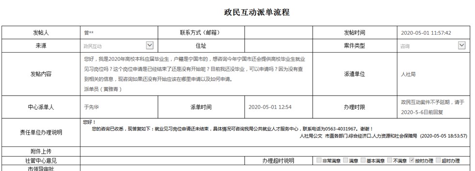 【政民互动】高校毕业生见习岗位申请有没有结束