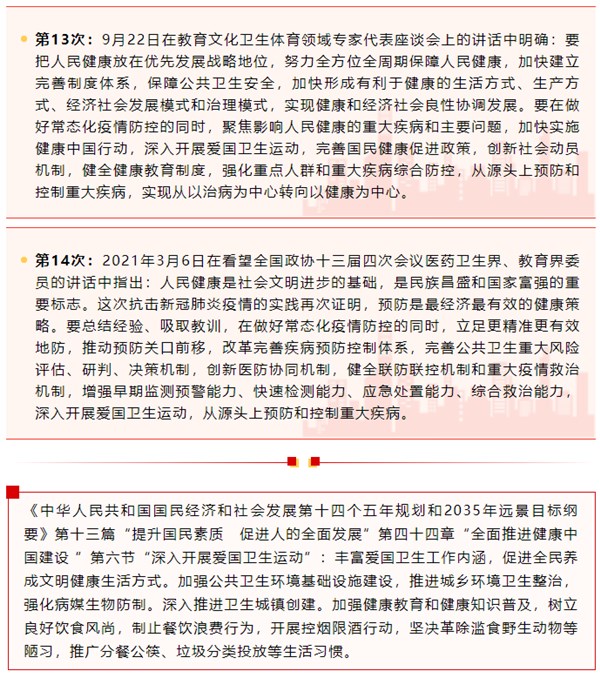 习近平总书记关于爱国卫生运动重要讲话及“十四五”发展规划和2035年远景目标纲要有关爱卫内容