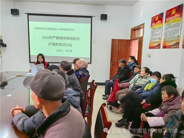 为创新特殊人群管理,帮助家属了解严重精神障碍居家康复护理知识,通过家庭的力量,搭建自助互助平台,以帮助患者早日康复,提升生活品质。2024年1月10日,宁国市新时代文明实践中心志愿服务总队志愿者走进港口镇,为辖区此类特殊人群开展了《严重精神障碍居家康复护理》健康知识科普活动,参加本次活动的对象为辖区内管理的50名严重精神障碍患者家属。
