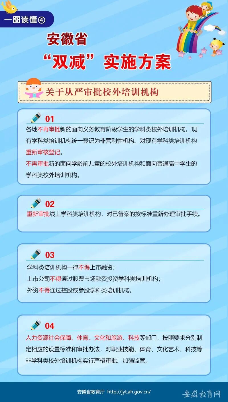 11月1日,安徽出台《安徽省进一步减轻义务教育阶段学生作业负担和校外培训负担的实施方案》,即“双减”政策文件正式出台。《方案》对作业布置、批改、校外培训收费等问题做了明确要求。