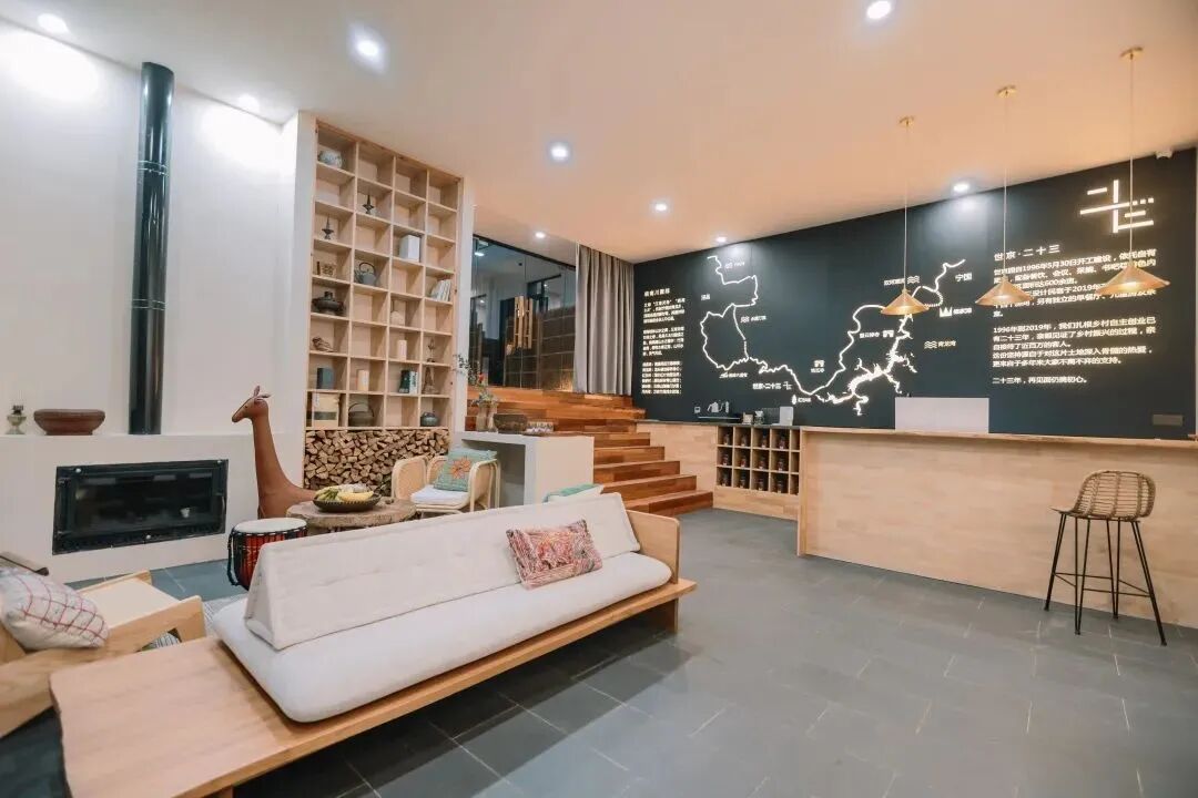 民宿共有14间房间,设有明亮的落地窗、下沉式大厅、书架、布艺沙发影院等设施,点缀有马头墙、老格窗、雕花牌匾等徽派元素,处处皆是古韵满满的设计巧思,为住客提供了良好的居住环境。