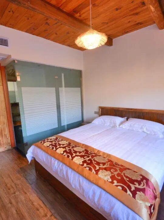 民宿内共设客房13间,包含豪华亲子房、山景房、商务房、大床房等多种房型,为各位住客提供了多种入住选择。各个房间内设施齐全,装修风格古朴典雅,推窗即可欣赏山光林色、溪水潺潺,居住体验感极好。