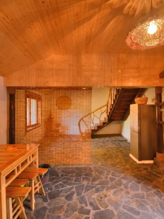 民宿风格以传统农家风味为主,木质的桌椅、楼梯扶手、门窗,营造了浓浓的农家风情。加上现代化的茶吧、复古的自助厨房,兼具古朴和现代化,让您入住于此,收获愉悦的居住体验。